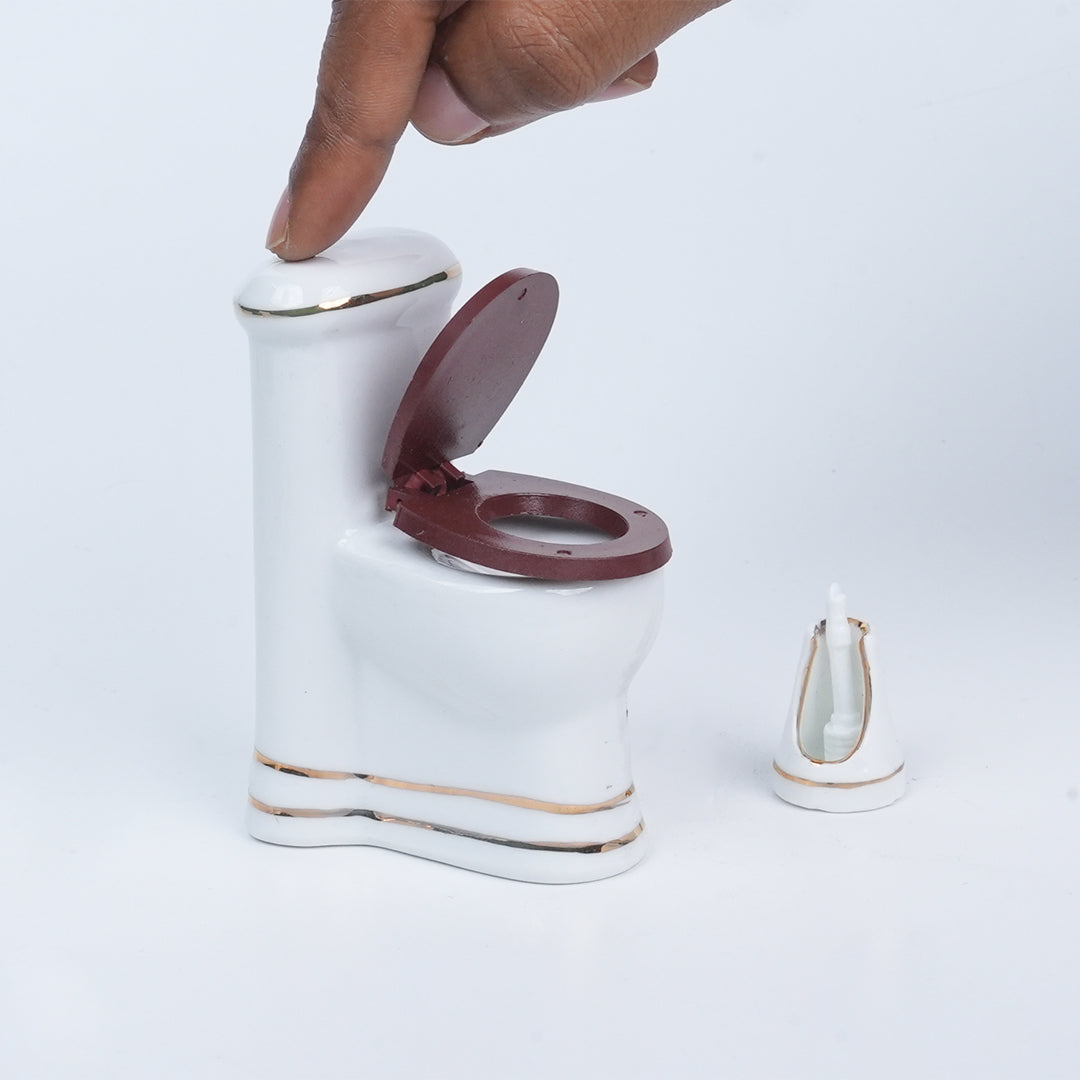 Enhance your dollhouse with this 5-piece ceramic bathroom set. Featuring a toilet, sink, bathtub, towel rack, and mirror, your dollhouse will be complete with all the necessary fixtures. Expertly crafted for a realistic look, this set will bring your dollhouse to life.