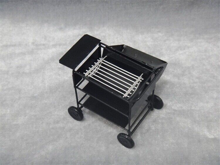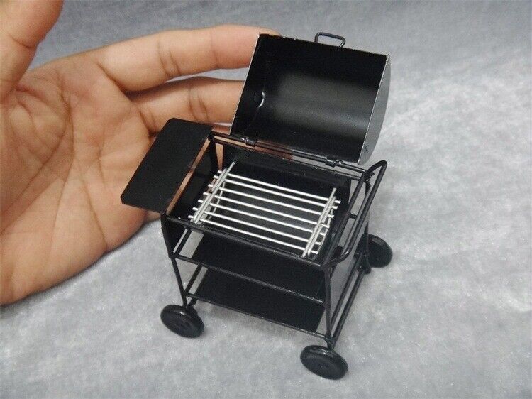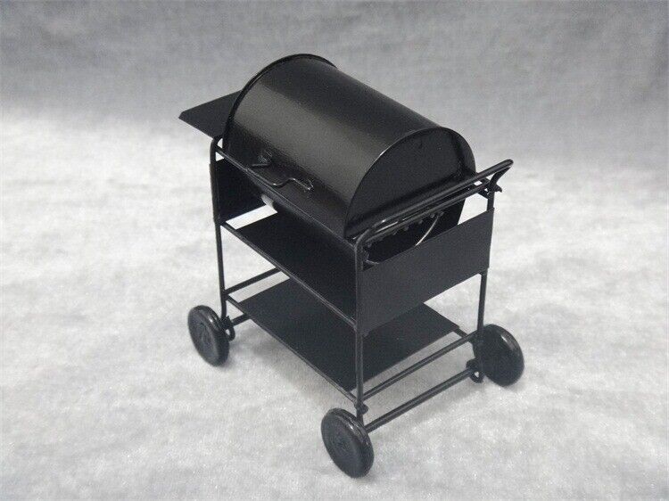 A miniature barbecue grill. It's a tiny replica of a full-sized grill, often used in dollhouses or for decorative purposes.