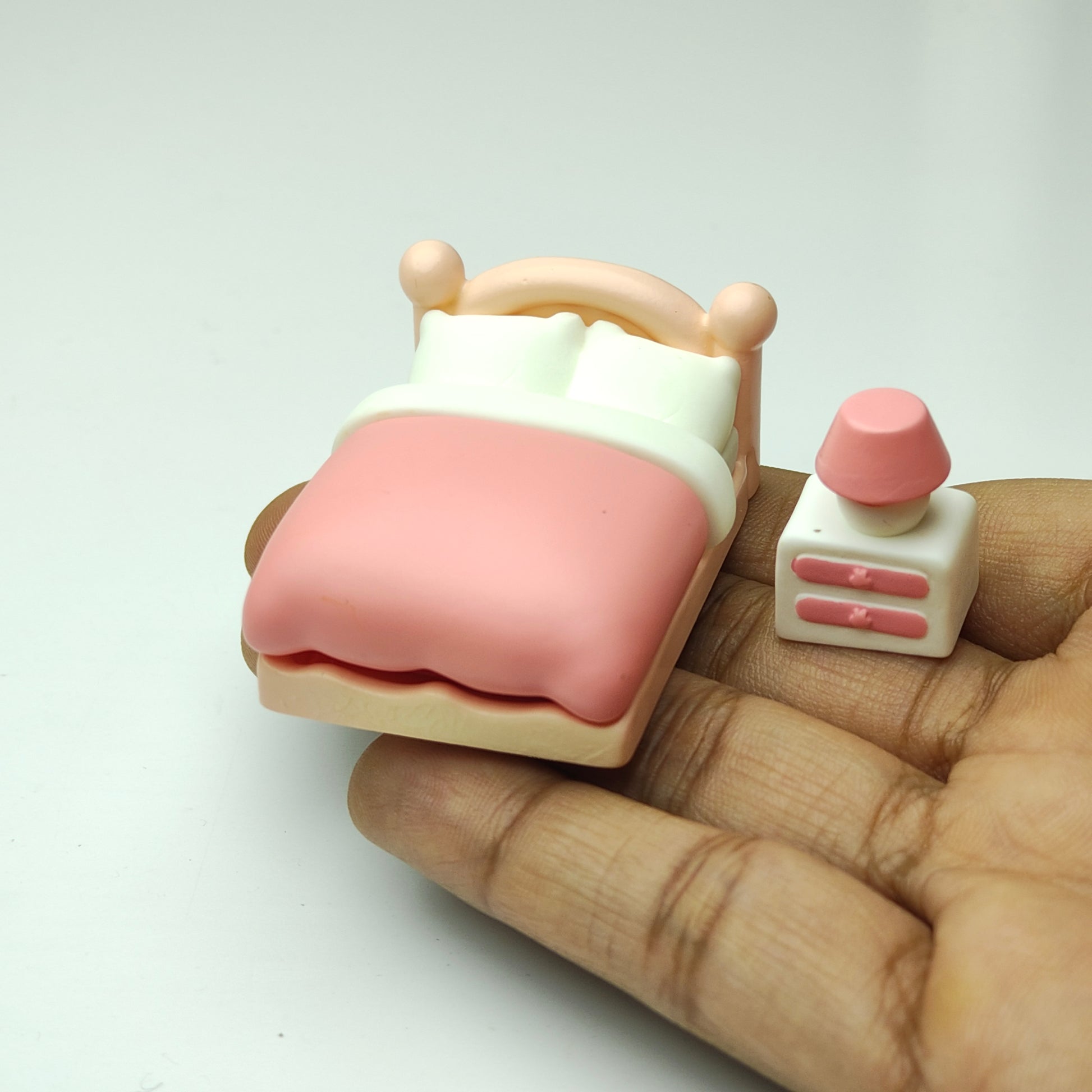 This bedroom set includes a dollhouse miniature, perfect for adding a touch of charm to any bedroom. Crafted with detail and care, this addition will enhance the aesthetic of your space and add character to your decor. Bring your dollhouse to life with this delightful bedroom set.