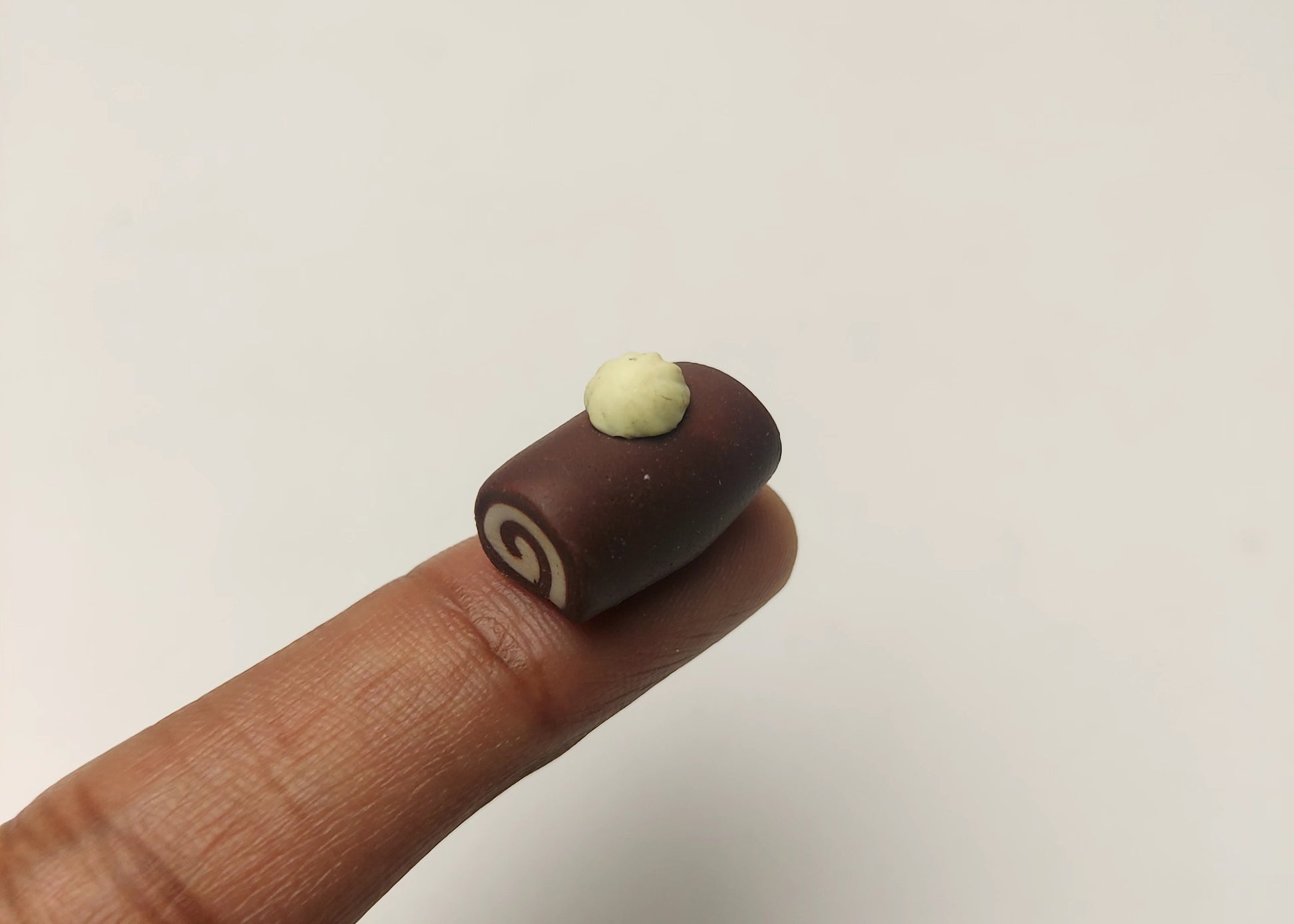 This miniature chocolate roll cake is the perfect addition to any dollhouse kitchen. Expertly crafted to look just like the real thing, this dessert will add a touch of sweetness to your miniature world. Made with high-quality materials, this dollhouse accessory will elevate the overall look of your dollhouse and provide endless hours of imaginative play.