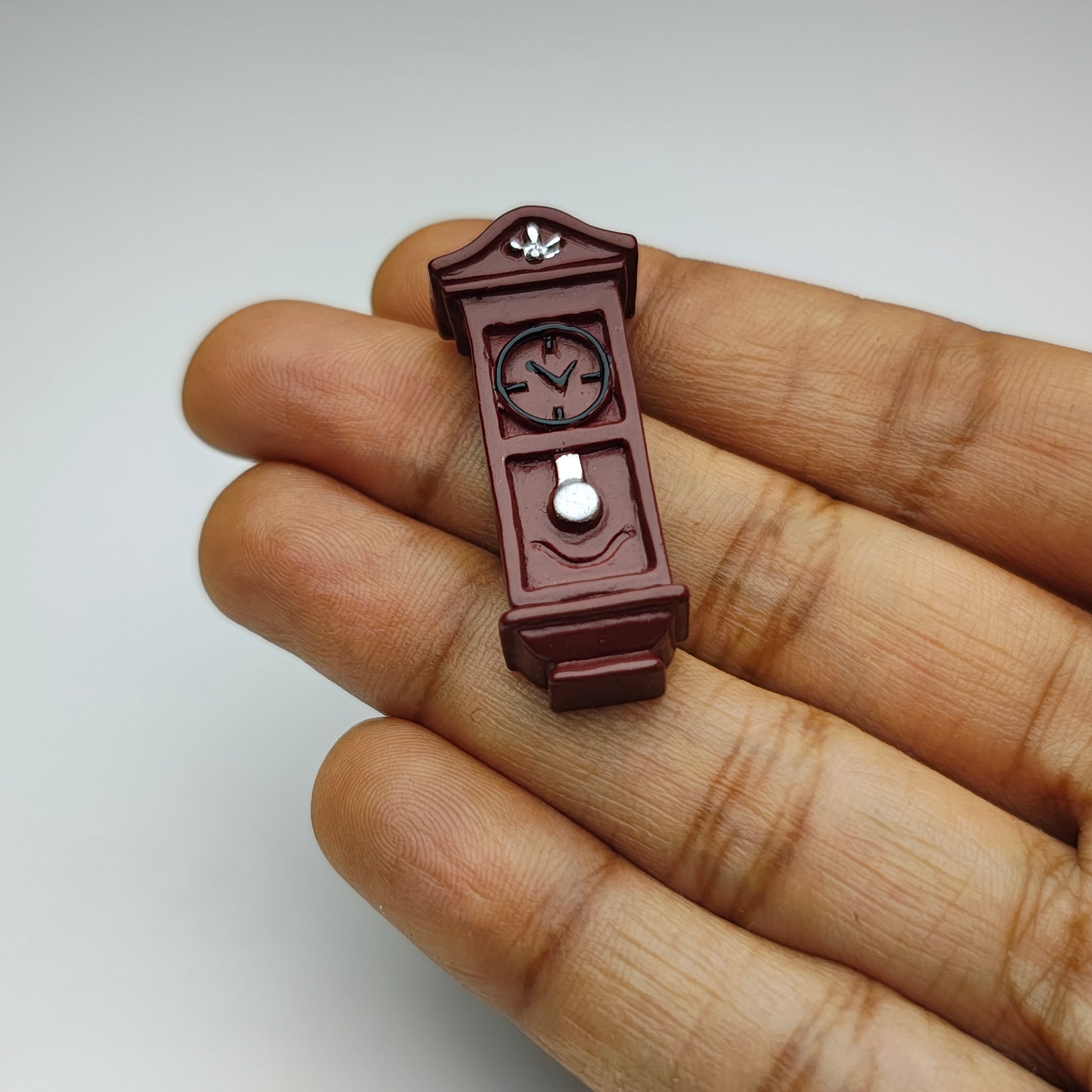 Introducing our Dollhouse Miniature Clock. Perfect for adding a touch of realism to any dollhouse, this tiny clock is carefully crafted to replicate the classic design of a real clock. Made with quality materials and attention to detail, this miniature clock is perfect for collectors and dollhouse enthusiasts alike.