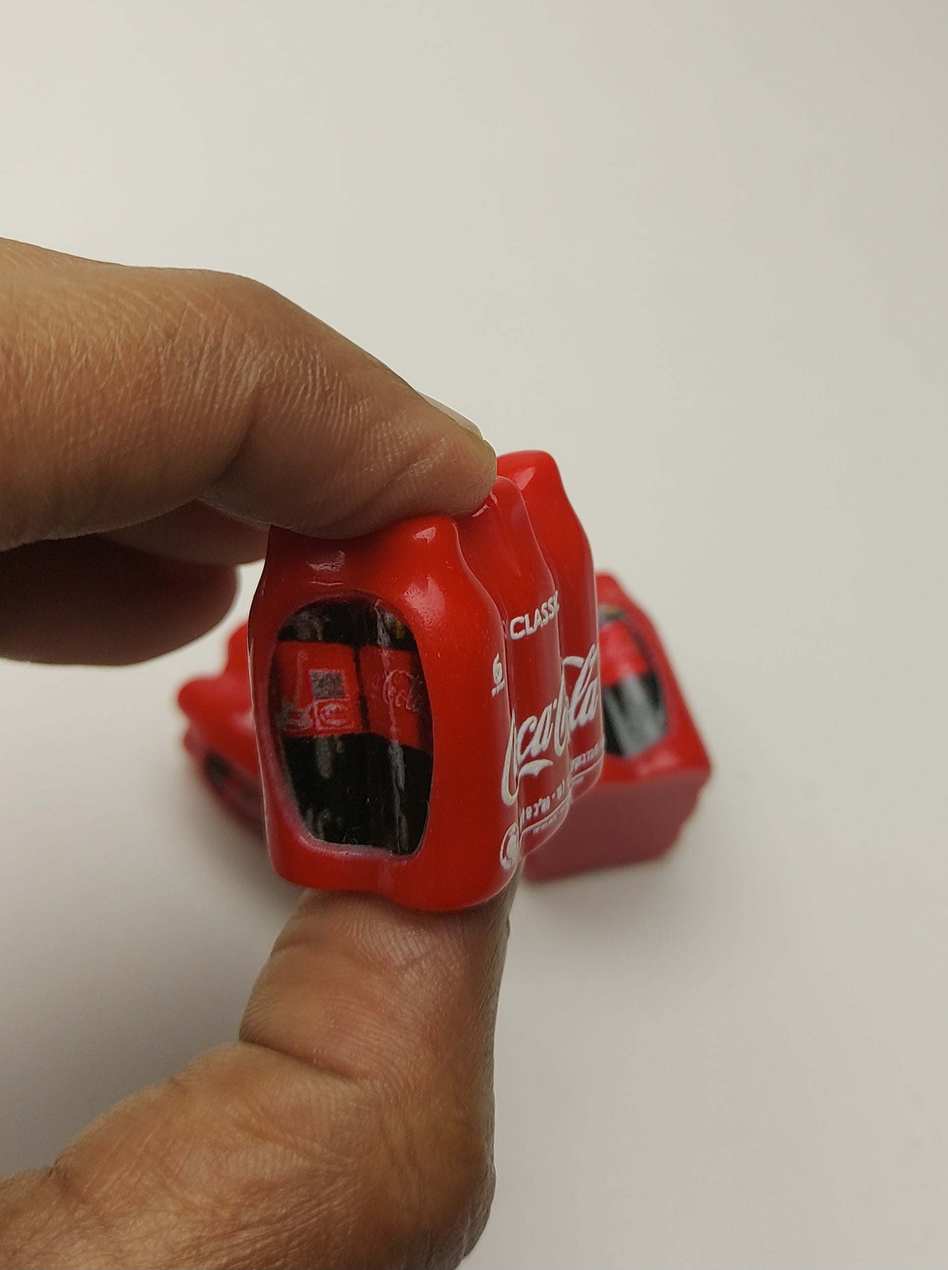 This Coca-Cola beverage crate is a dollhouse miniature that accurately represents the iconic brand. Made with precision and attention to detail, it is a great addition to any dollhouse collection. Its 1:12 scale provides a realistic touch and enhances the overall aesthetic of the dollhouse.