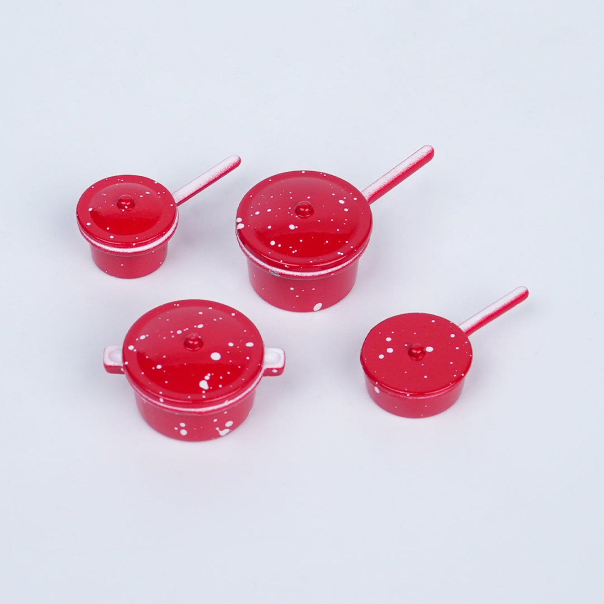 This 4 piece set of cooking pots and pans is perfect for any kitchen. The durable and lightweight construction makes cooking a breeze. With a stylish dollhouse red color, these pans add a touch of vibrant color to your cooking experience. Constructed with high-quality materials, they are perfect for all your cooking needs.