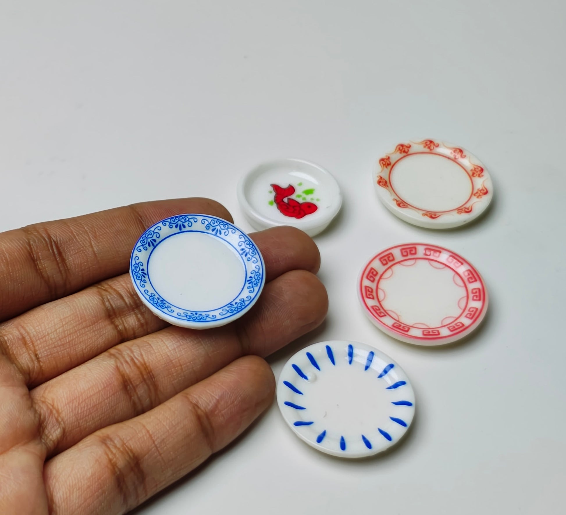 This dollhouse miniature design plate is perfect for giving your dollhouse a realistic touch. Each plate is unique and adds character to your miniature home. Expertly crafted to resemble real plates, these pieces are a must-have for dollhouse enthusiasts and collectors.