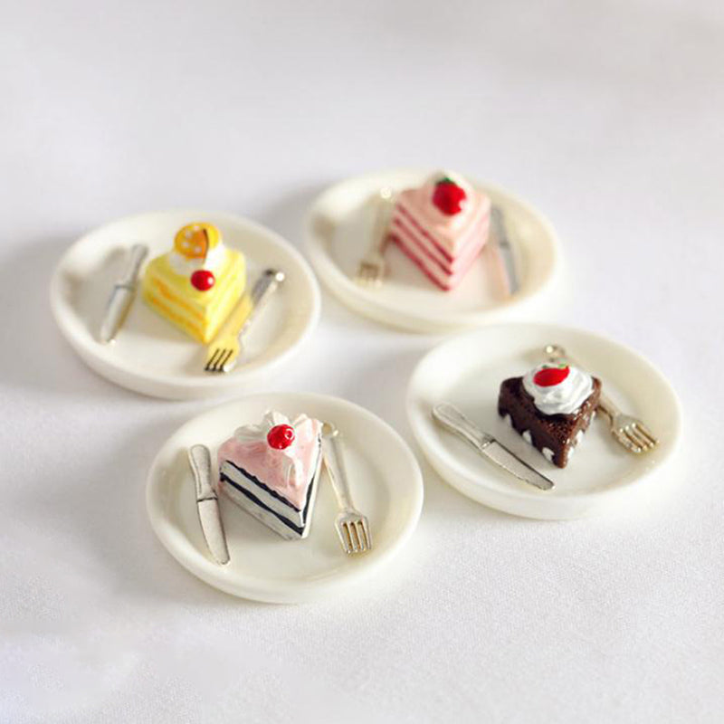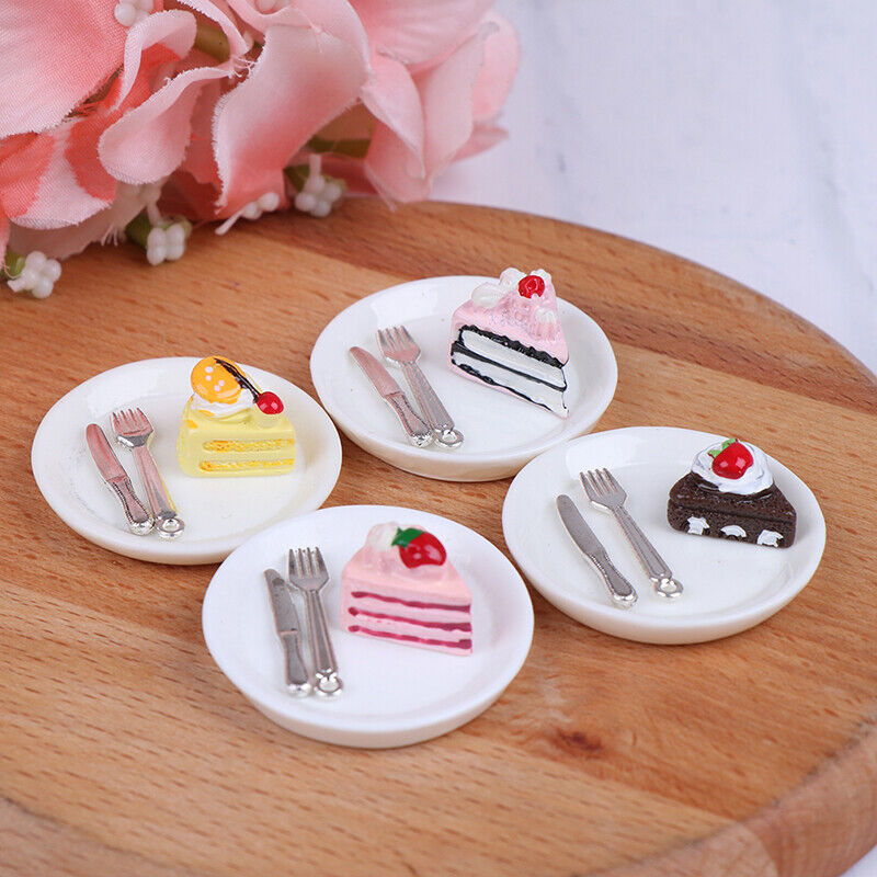 This miniature cake plate comes with a fork and knife, perfect for any dollhouse dining experience. Made for doll house food, it adds a touch of elegance to any play set. The delicate design and detailed utensils make it a must-have for miniature enthusiasts.