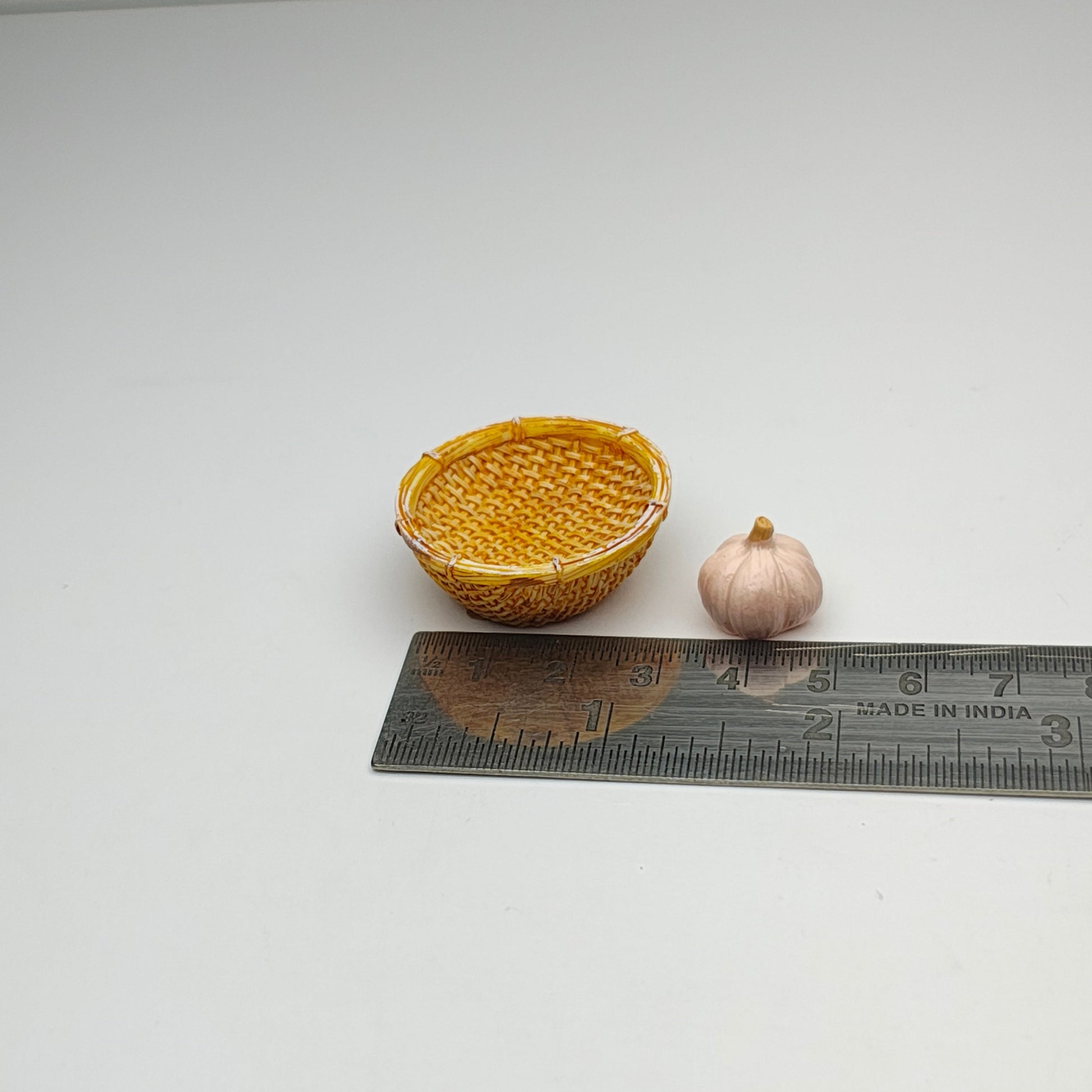 This handmade Garlic Basket is a perfect addition to any dollhouse mini kitchen. Made with intricate attention to detail, it adds a touch of authenticity to your mini home. Made from high-quality materials, this miniature will bring charm and character to your collection.