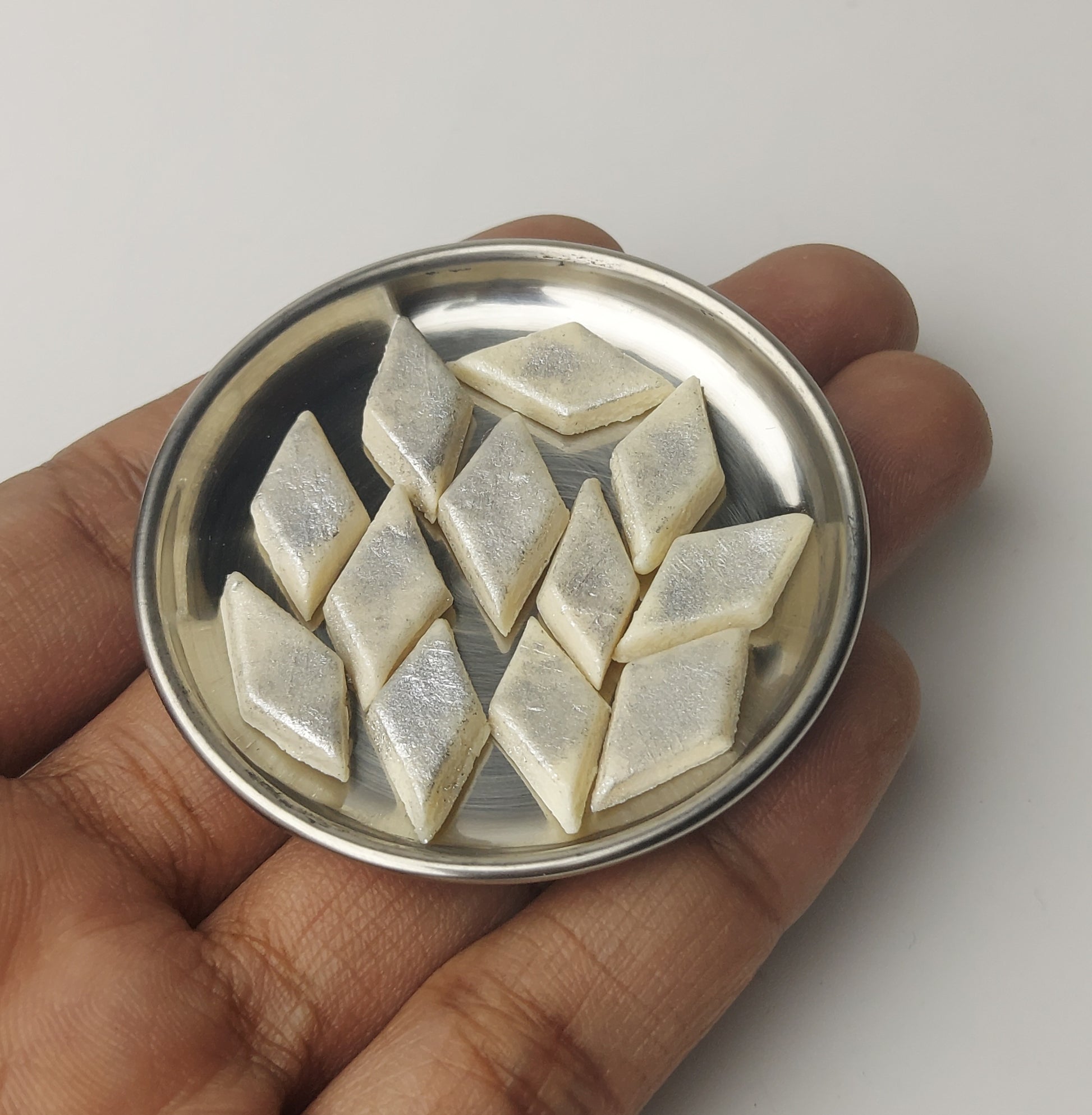 "Crafted with high-quality ingredients, our Kaju Katli is a delicious Indian dessert. Each piece is a beautiful dollhouse miniature, perfect for collectors or miniature enthusiasts. Indulge in the delicate flavors and intricate details, while adding a touch of elegance to your collection."