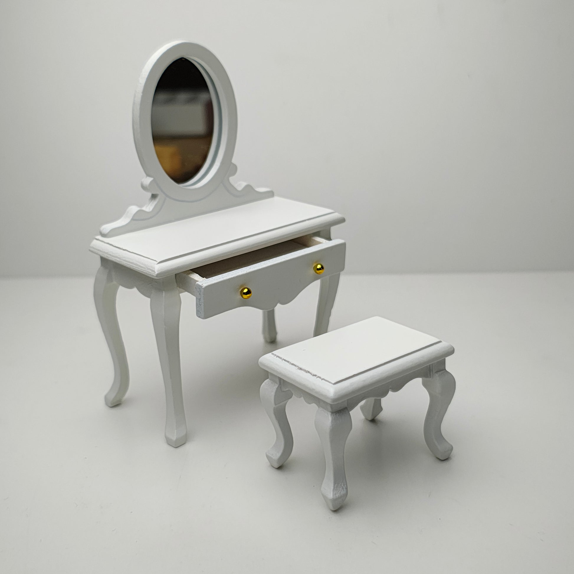 This Miniature Dressing Table is a perfect addition to any dollhouse. Its intricate design and high-quality craftsmanship make it a realistic and elegant piece. Crafted in miniature, it is ideal for dollhouse enthusiasts and collectors. Enhance the beauty of your miniature world with this stylish and functional dressing table.