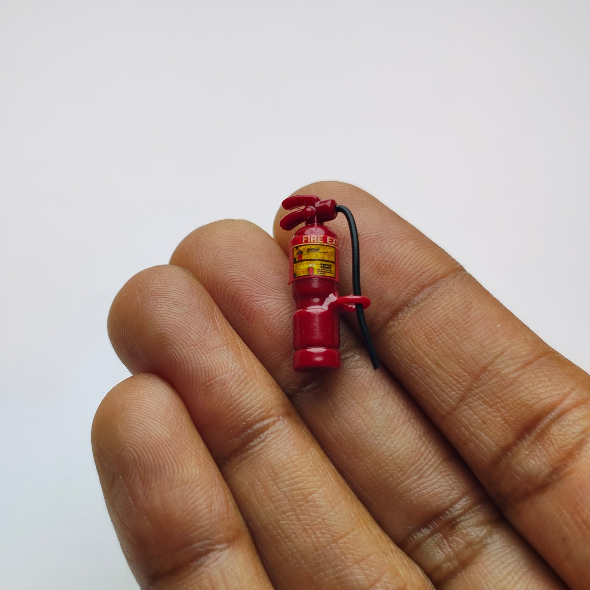This fire extinguisher is a perfect addition to any dollhouse. Made to scale, it adds a touch of realism to your miniature world. Expertly crafted and designed with precision, it is a must-have for any collector.