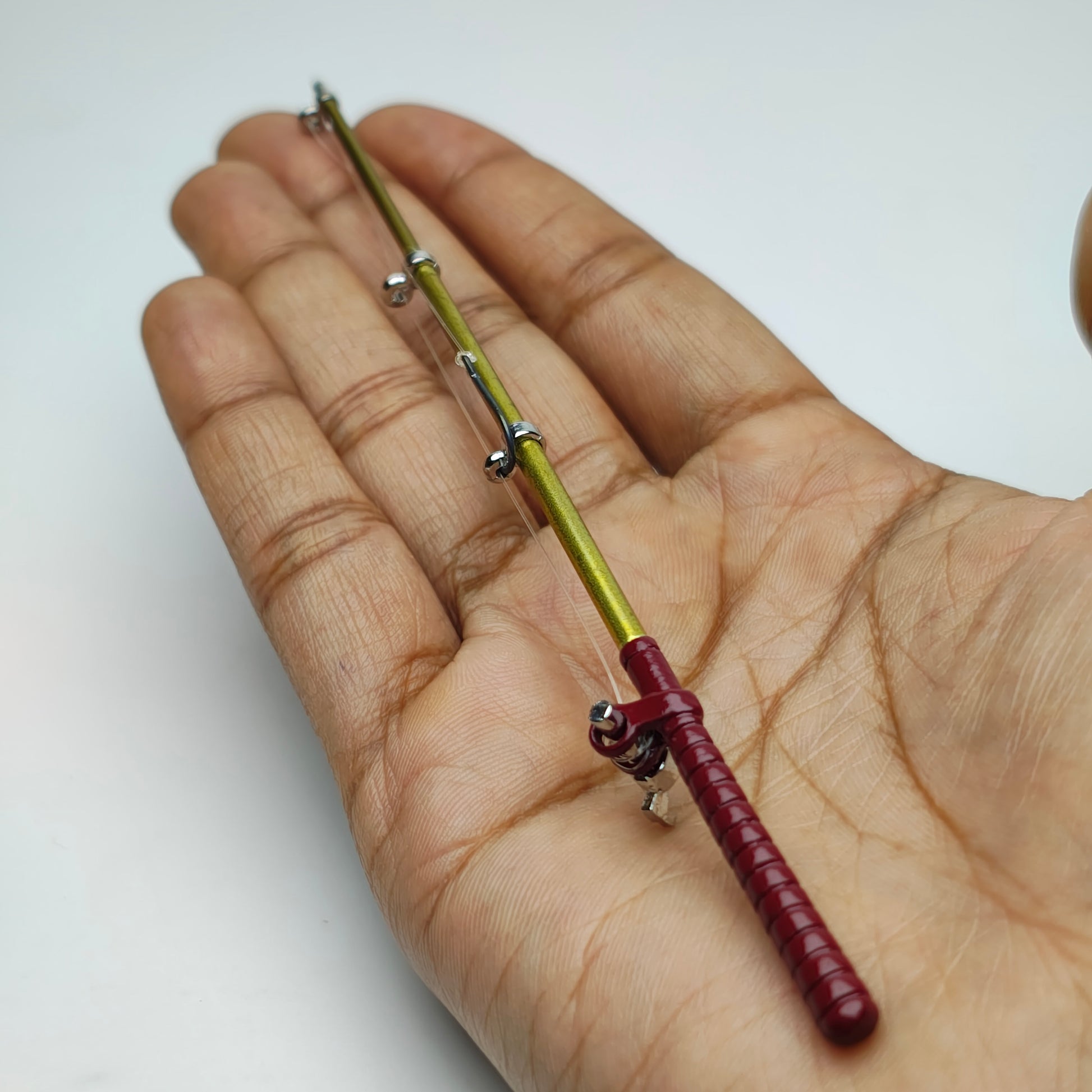This miniature fish rod is the perfect addition to any dollhouse. Made specifically for miniature settings, it will add a realistic touch to your scene. Crafted with precision and attention to detail, this rod is sure to impress even the most discerning collector.