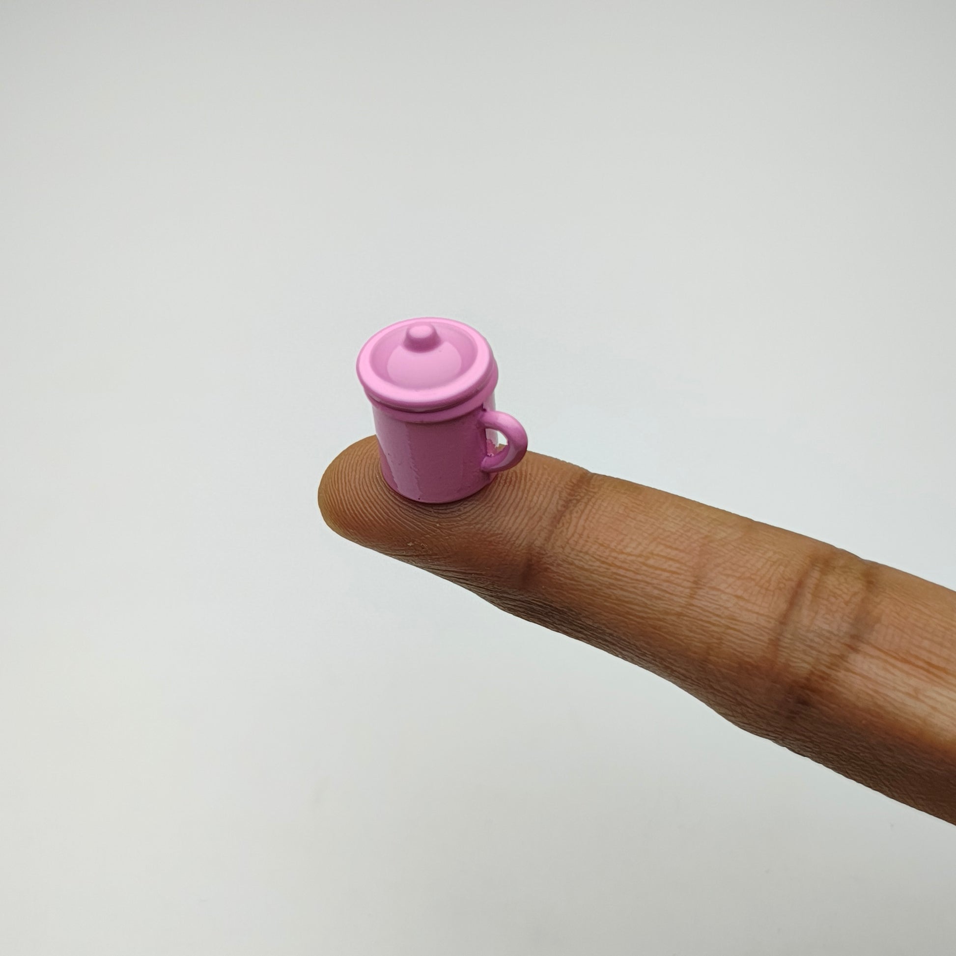 This miniature metal cup is the perfect addition to any dollhouse. Crafted with precision and attention to detail, it adds a touch of realism to your miniature world. Handcrafted with durable metal, it is built to last and withstand play or display. Elevate your dollhouse with this exquisite piece.