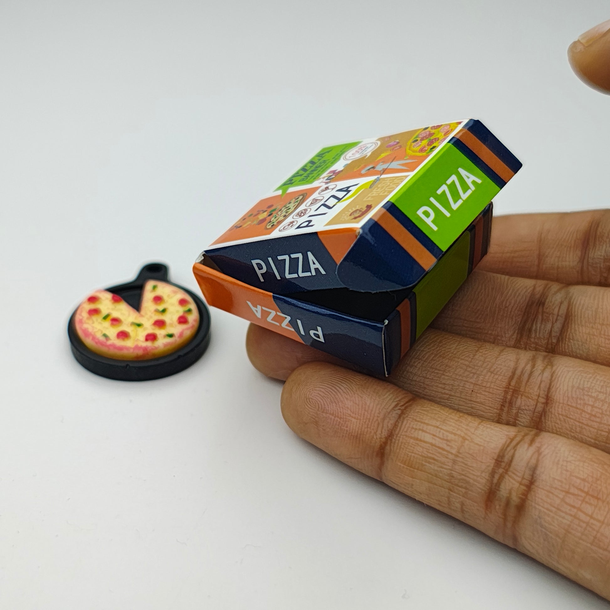 Expertly crafted with realistic details, this miniature pizza is the perfect addition to any dollhouse. Made to scale, it comes complete with a tiny pizza box for an added touch of authenticity. Add this charming piece to your collection today.