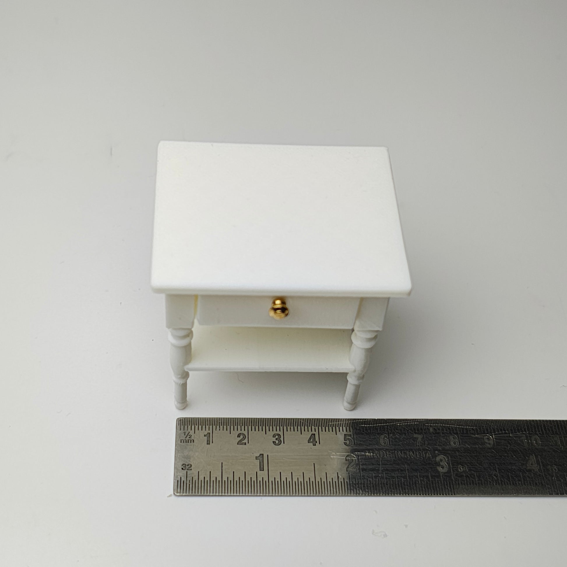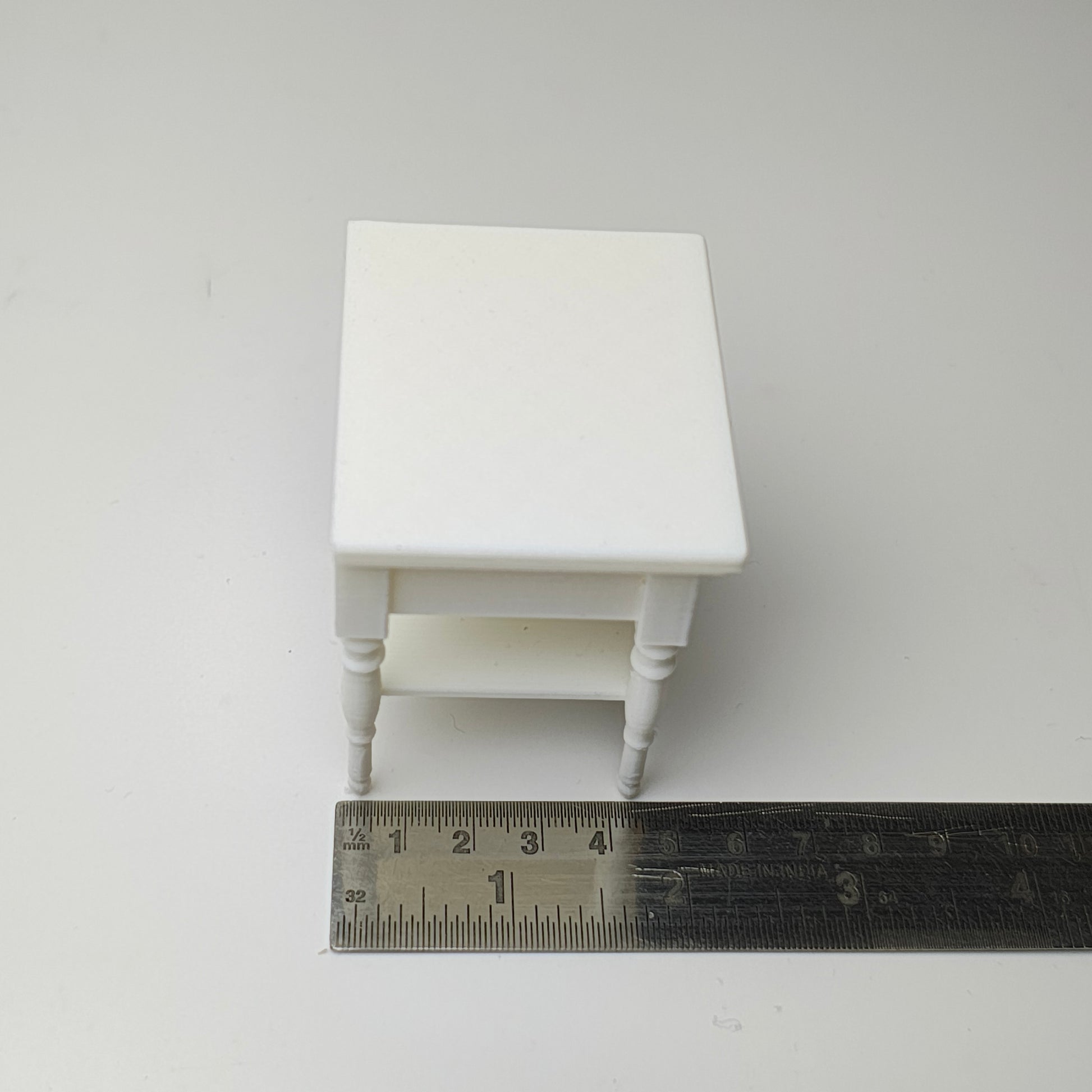 This miniature side table is a must-have for any dollhouse enthusiast. Crafted with intricate detail, it adds a touch of realism to any miniature setting. Made specifically for dollhouse use, it is perfectly scaled to fit in any room and is sure to impress with its authentic design.