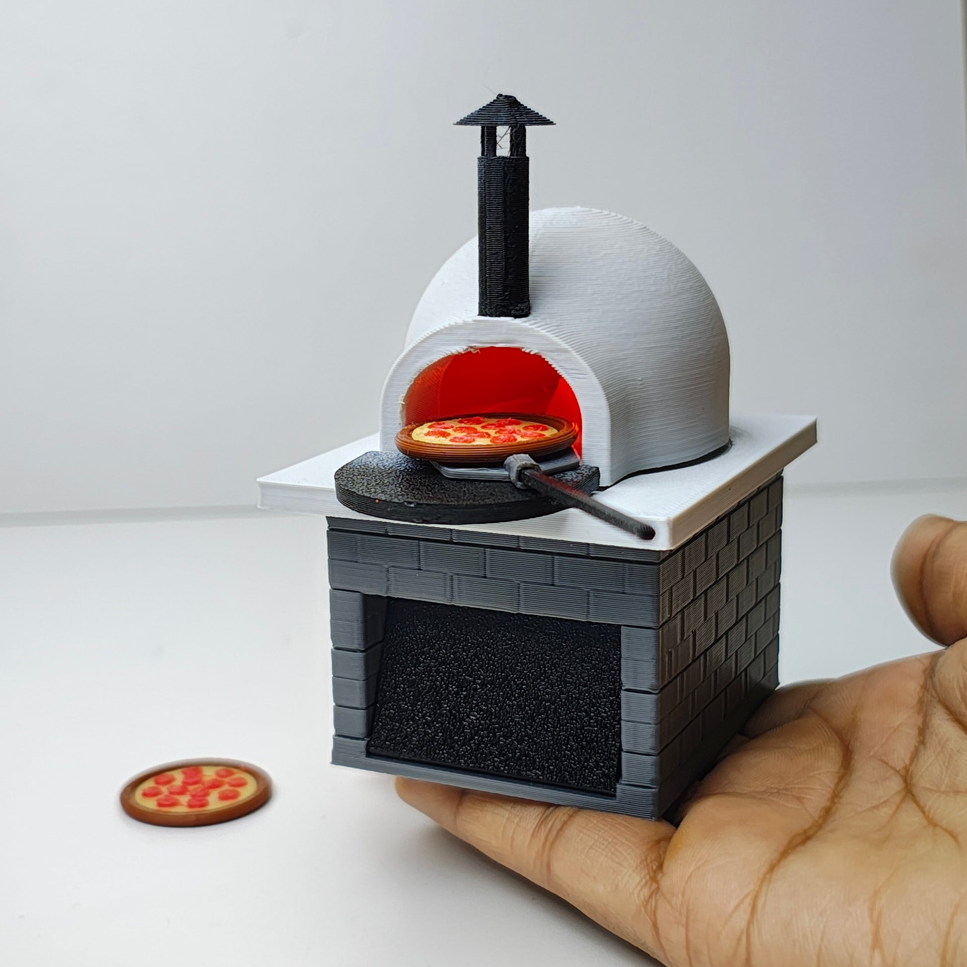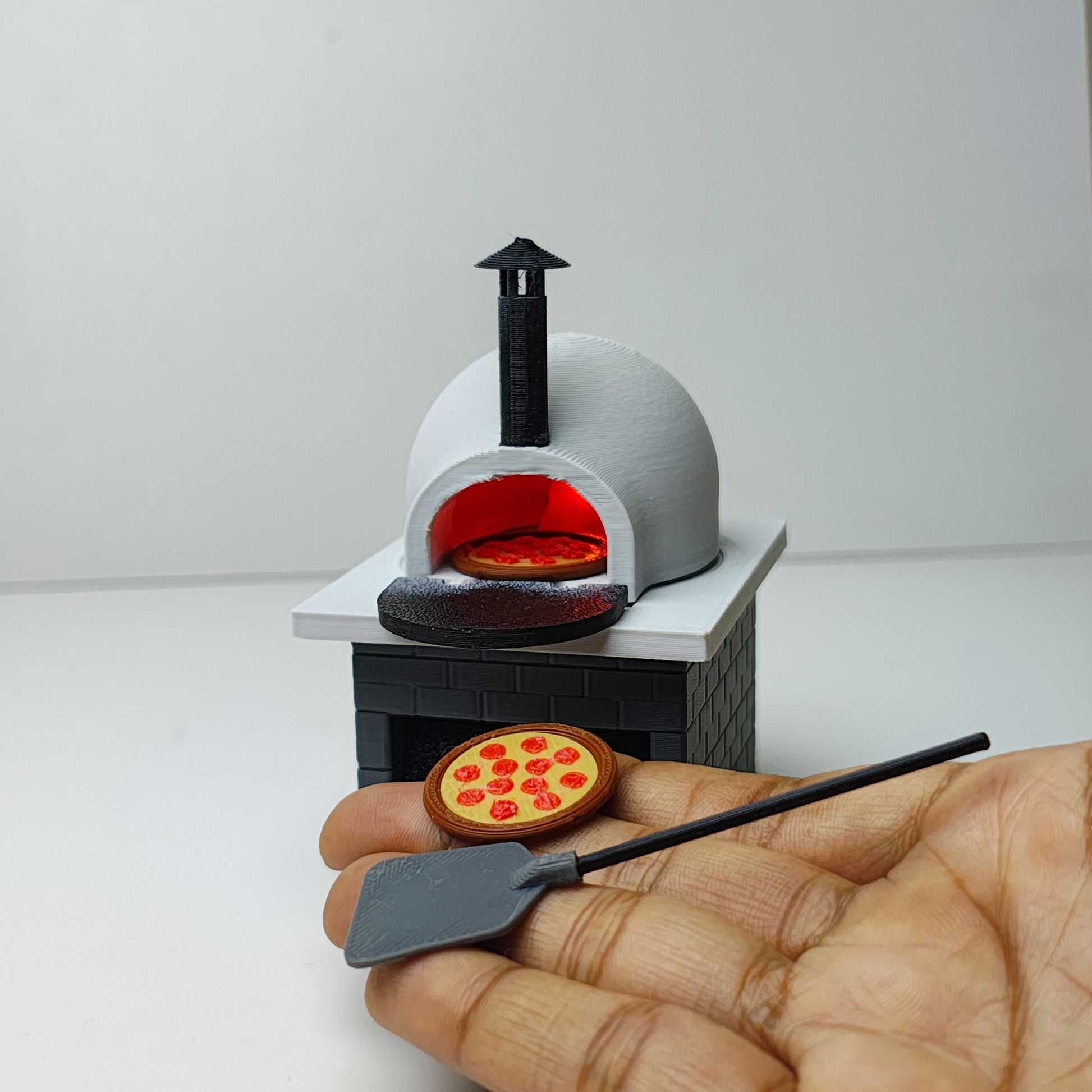This dollhouse miniature pizza oven is a fun and realistic addition to any miniature kitchen. Its detailed features and compact size make it a perfect addition to any dollhouse or miniature scene. Made with high-quality materials, it is built to last and provide endless hours of imaginative play.