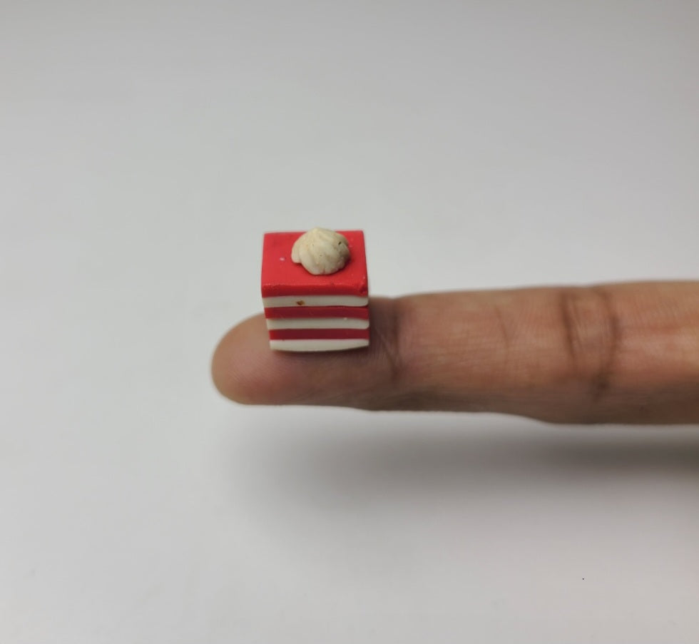 This dollhouse miniature of a red velvet cake is a perfect addition to any dollhouse kitchen or bakery scene. Made with intricate details and realistic colors, it adds a touch of elegance and charm to miniature displays.