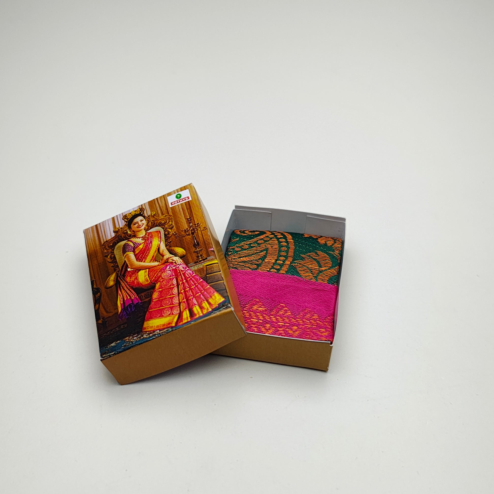 Expertly designed for collectors, this Saree Box features a flawless miniature dollhouse model that captures the intricate details of traditional Indian fashion. Made with precision and attention to detail, this charming piece is a must-have for any collector or fan of Indian culture. Bring a touch of elegance to your collection with this stunning Saree Box.