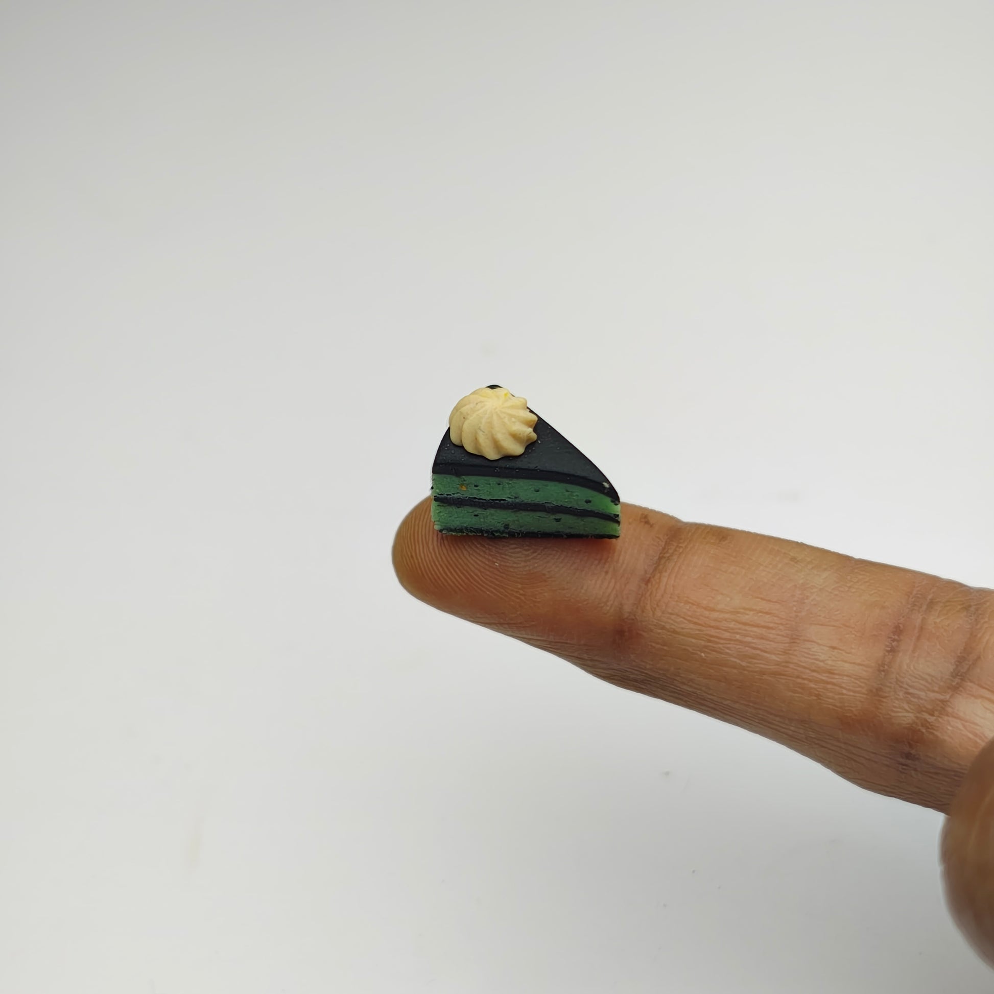 Enhance your dollhouse with this intricately crafted Slice Cake. Made to scale, this miniature addition adds a touch of realism to your playtime. Perfect for imaginative play or for collectors of dollhouse accessories.