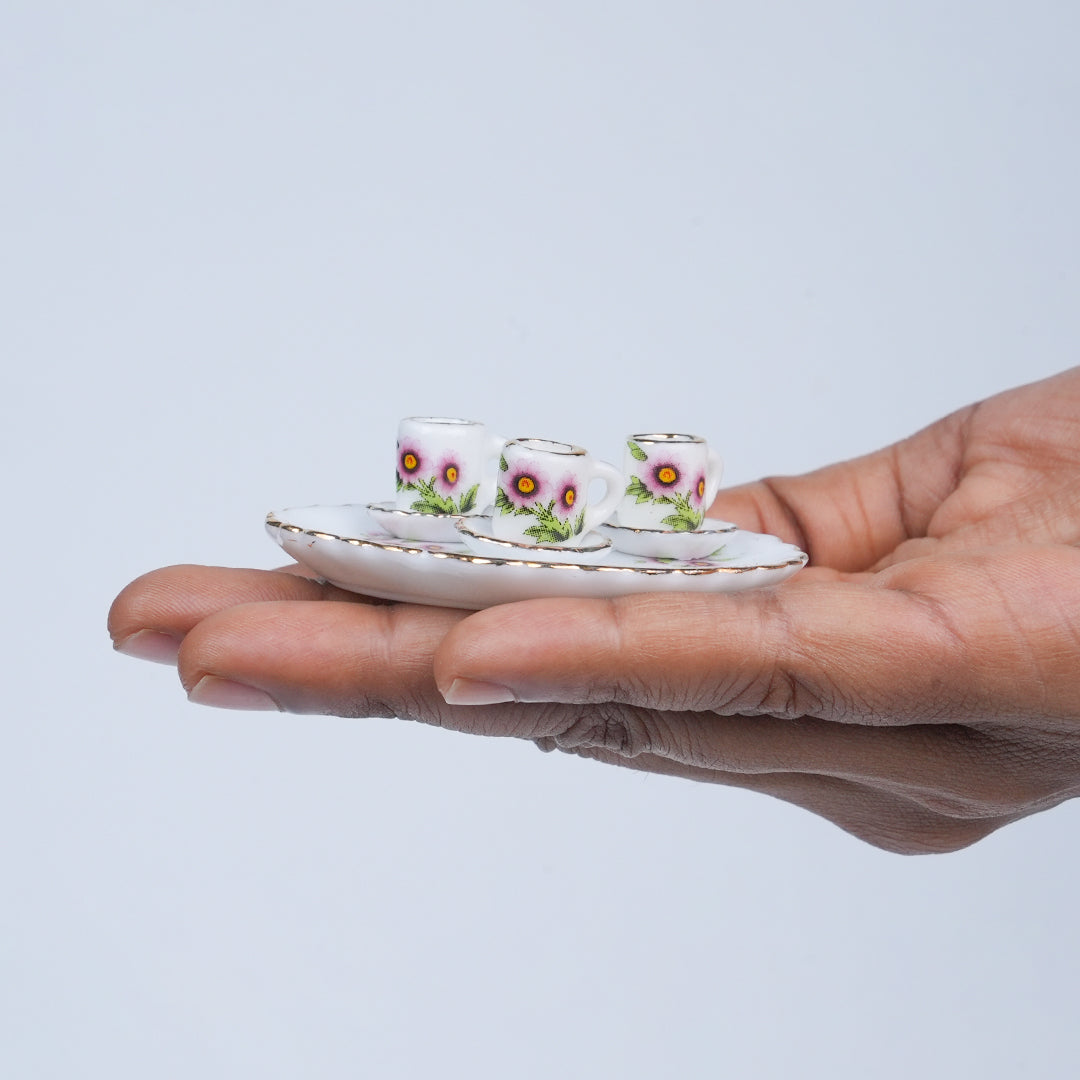 Add a touch of charm to your child's playtime with this miniature ceramic tea set. Includes 50 pieces perfect for hosting tea parties in their doll house kitchen. Not just for tea, use the plates to serve up their favorite snacks.
