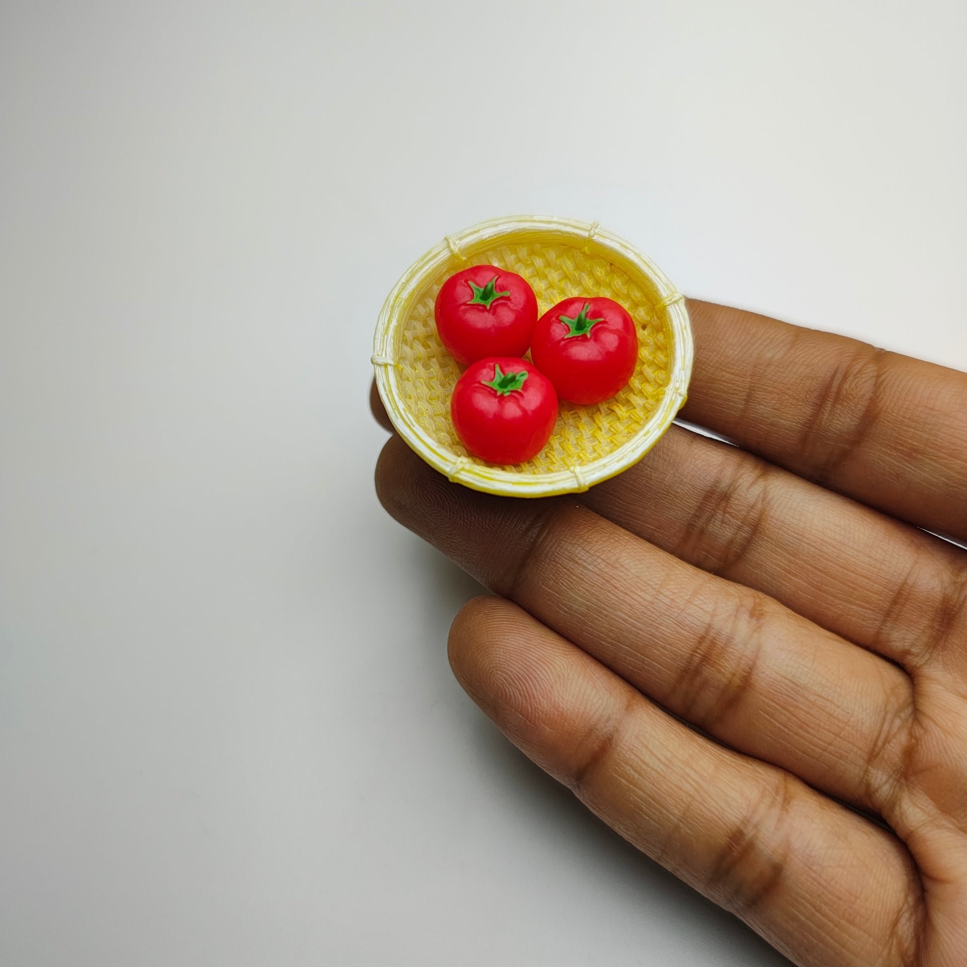 This Tomato Basket is a dollhouse miniature, perfect for adding a touch of realism to your miniature home. Made with precision and attention to detail, this basket is a must-have for miniature collectors and diorama builders alike. Enhance your miniature scenes with this lifelike piece, made for 1:12 scale settings.