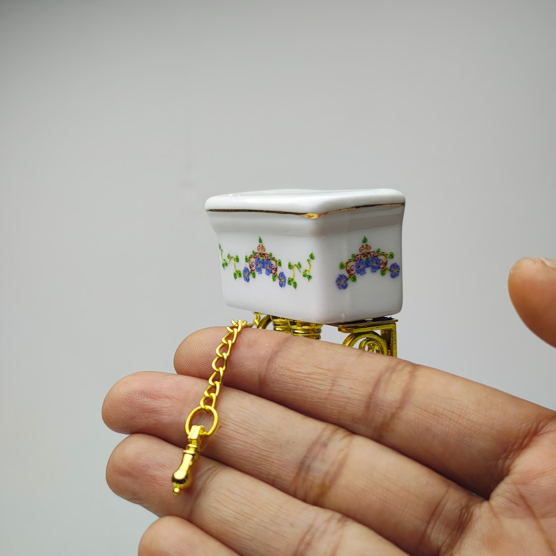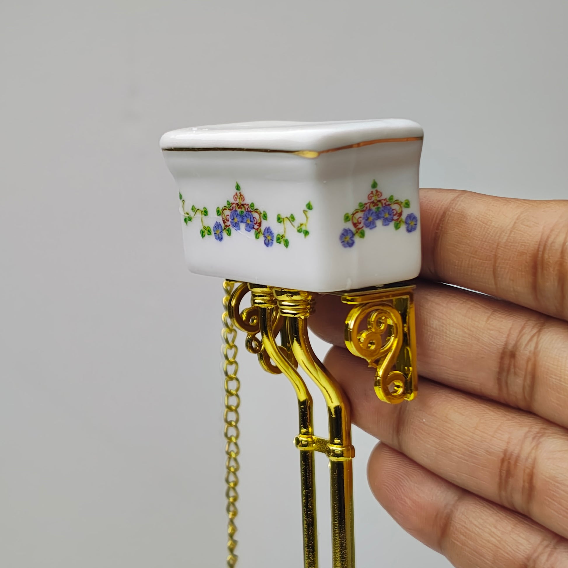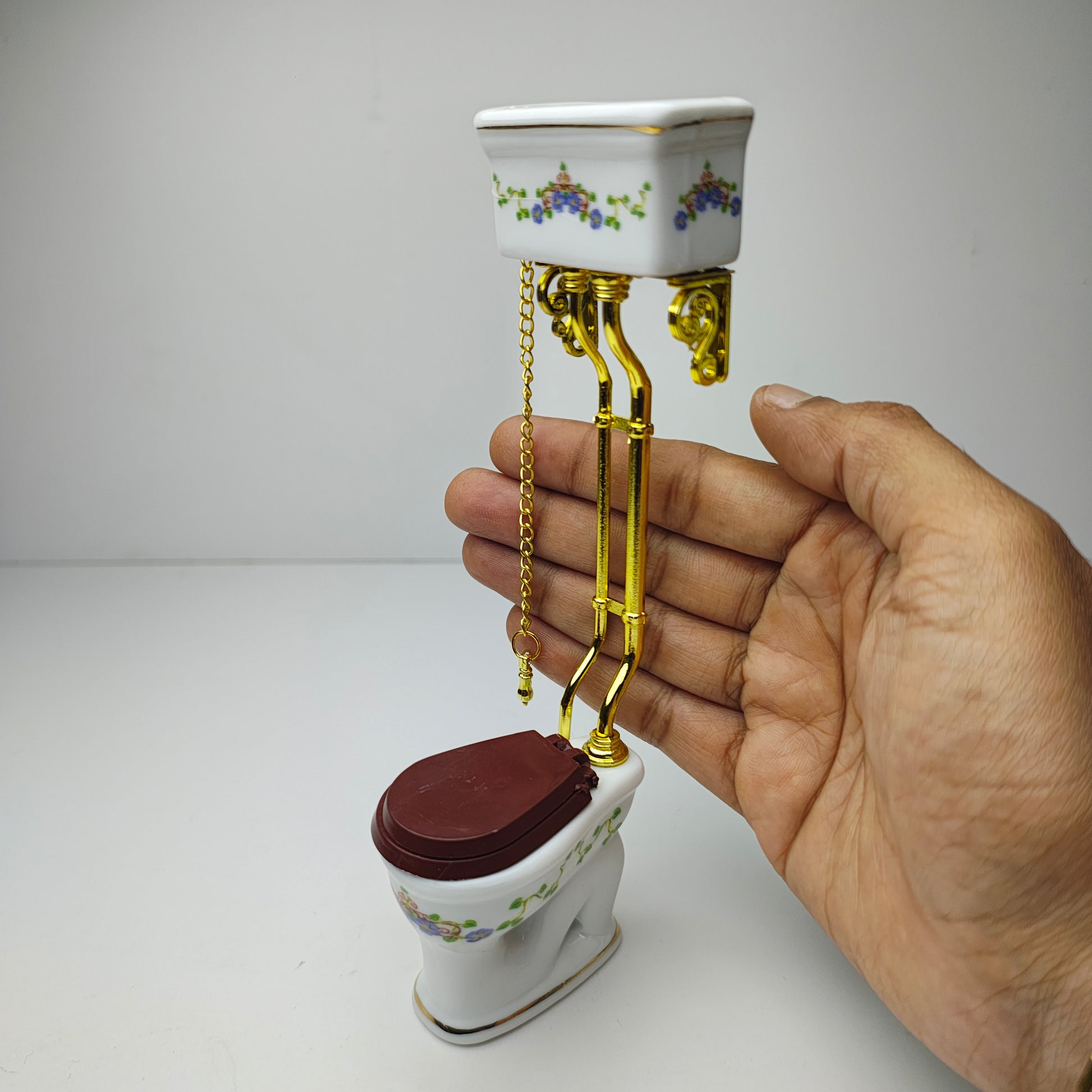 The Victorian High Tank Toilet is a meticulously crafted dollhouse miniature that accurately replicates the intricate design of Victorian-era bathrooms. With precise detailing, this collectible accentuates historical accuracy, making it an ideal addition for enthusiasts of miniature architecture and period-specific decor.
